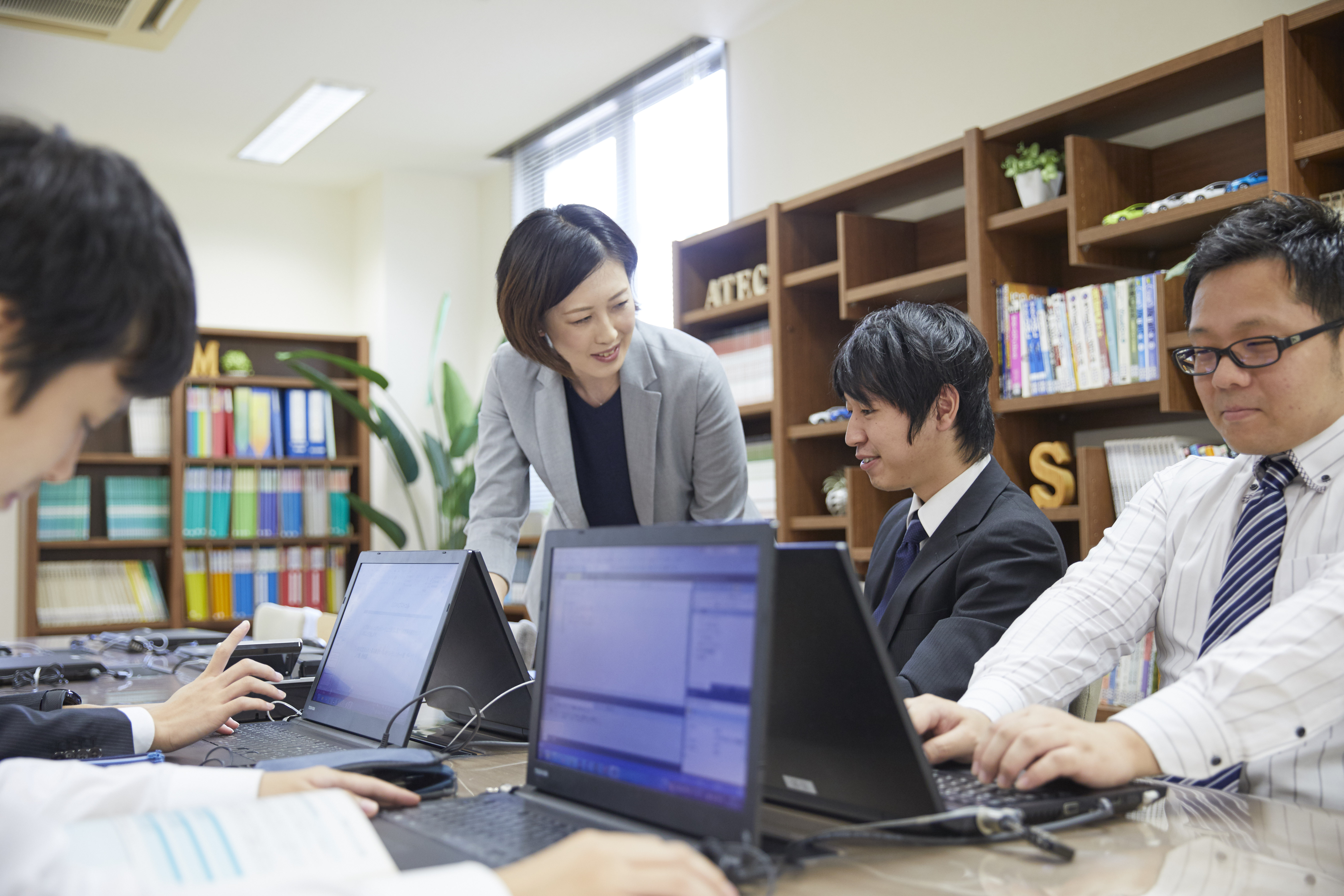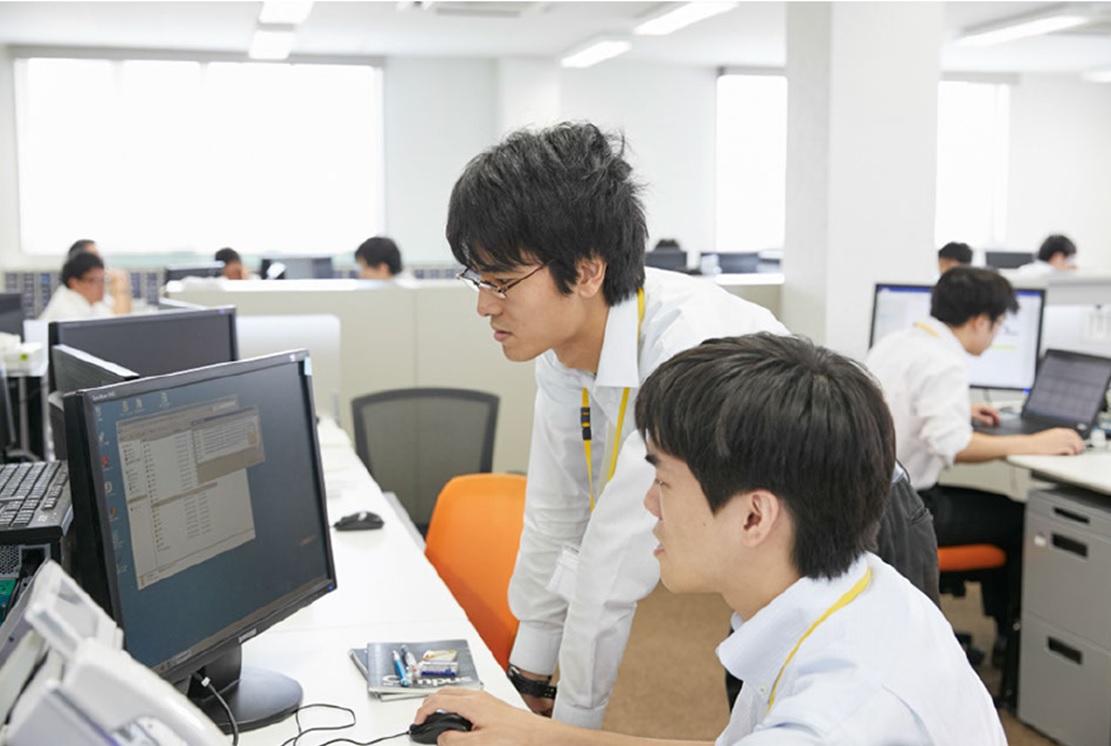 ソフト、電気・電子、機械など各分野の専任講師が仕事の基礎を徹底的にレクチャーし、配属後も直属の先輩スタッフが専任の教育担当として新人エンジニアを丁寧にフォロー致します。