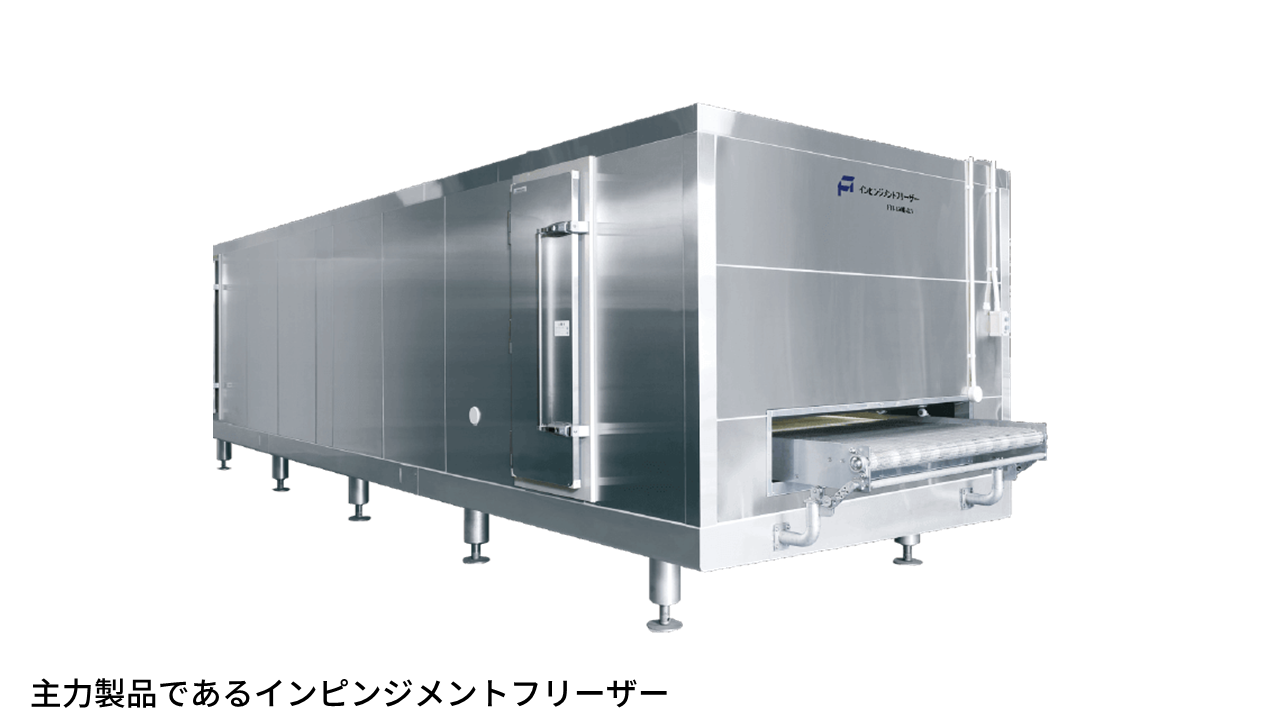 食品工場の冷却設備を中心としたトータルエンジニアリング企業です。食品の急速凍結装置「フリーザー」はメーカーとして製造も行っており、冷熱技術で食の「安全・安心・おいしさ」を支えています。