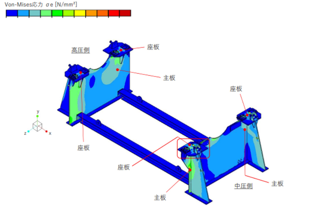 ▲発電用架台の強度計算(Von-Mises応力コンター)