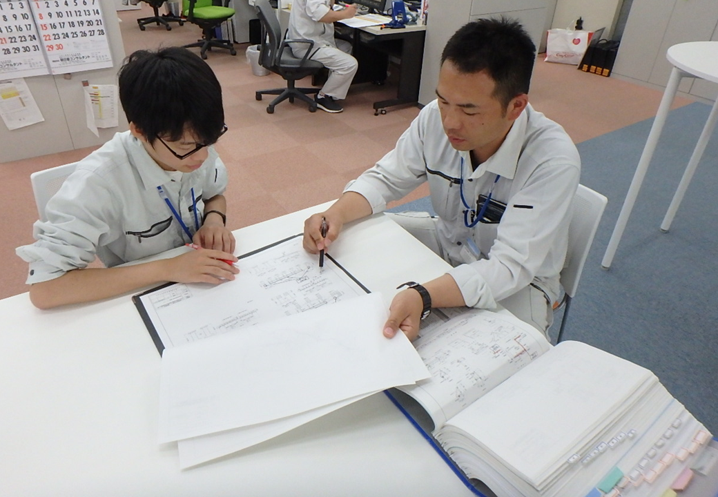 また、若手社員向け勉強会などにより、機械についての勉強や、各若手社員が日常業務でぶつかった課題や工夫したことを、ディスカッションすることで互いのスキル向上を図っています。