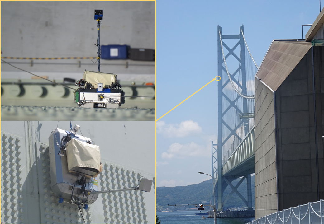 そこで、新たに高さ約300mの主塔の壁面点検を行う主塔点検用ロボットを開発しました。