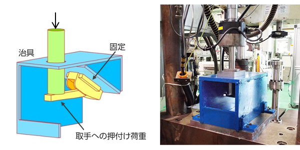 ハンドルの耐久試験の事例では、実物に近い動作を再現するテスト装置を設計・製作し、ハンドルの形状や製造方法の違いによる耐久性を評価します。