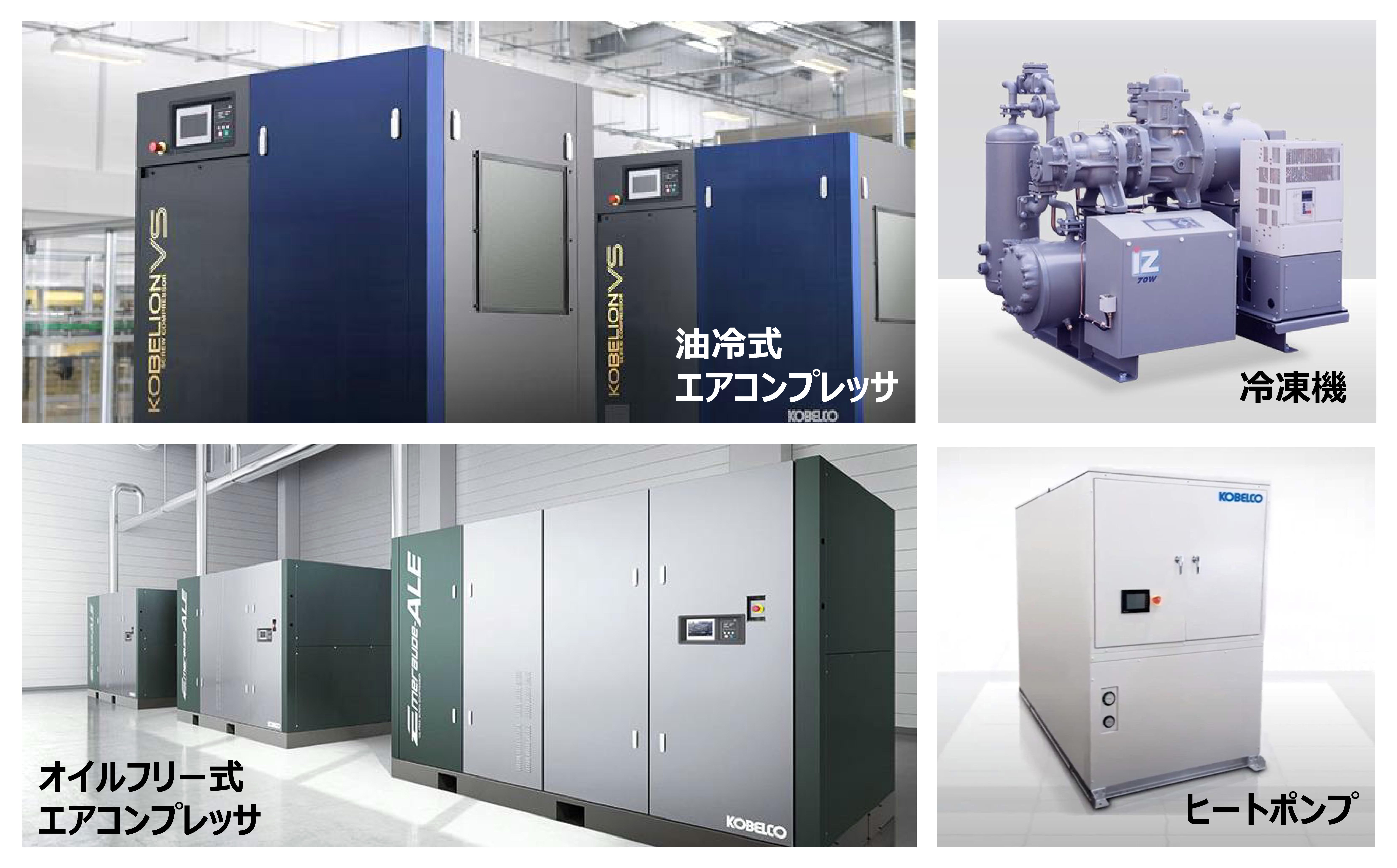 吐出空気への油の混入が許されない、クリーンエアが求められる用途、電子/半導体/食品/飲料/製鉄/化学/自動車等の業界で使用されるオイルフリー式スクリュコンプレッサの『エメロード』と、一般的な用途として最も普及している給油式スクリュコンプレッサの『コベライアン』のブランドで省エネ製品を展開しています。