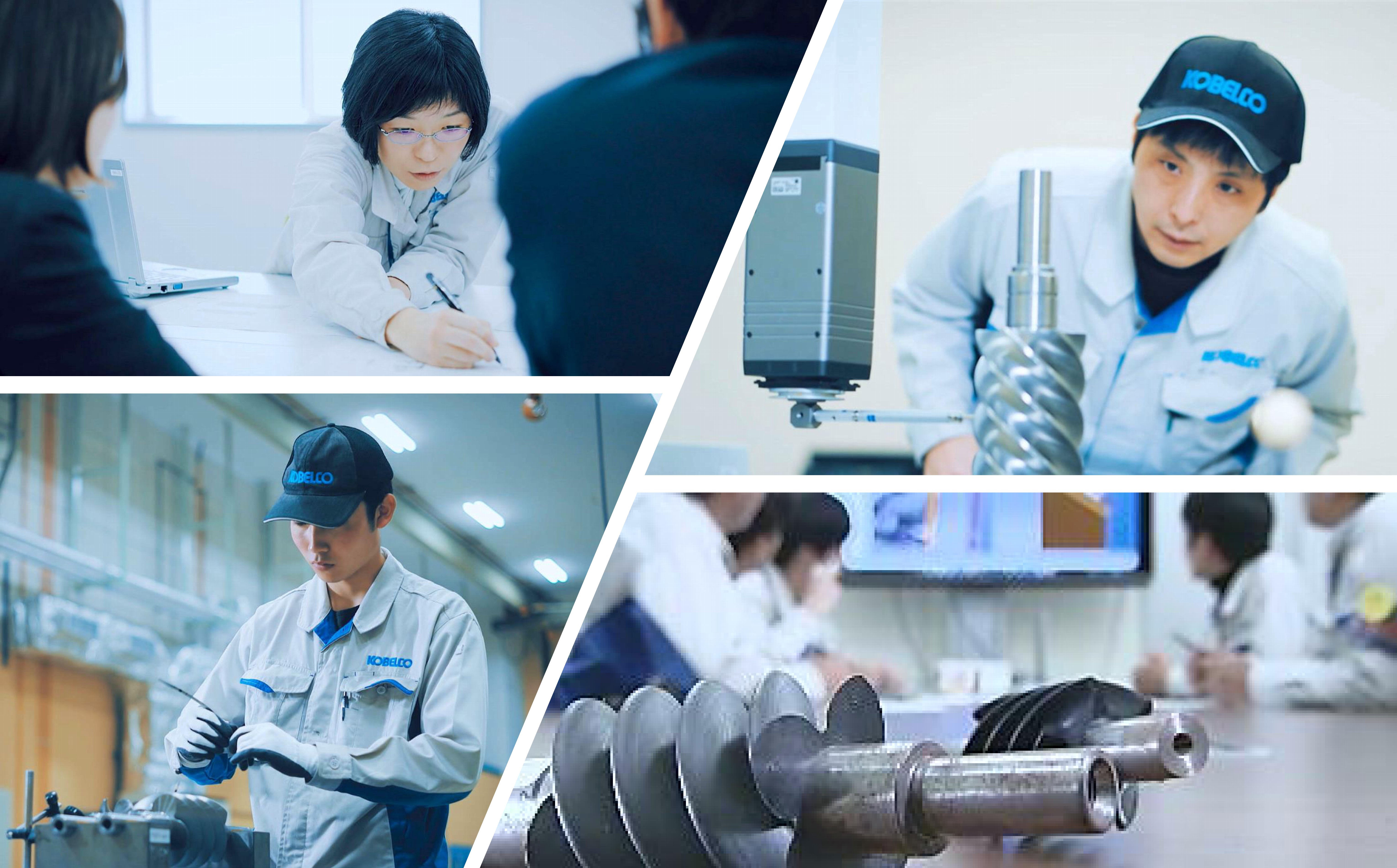 コベルコ・コンプレッサは、神戸製鋼グループの汎用圧縮機メーカーとして、エアコンプレッサ・冷凍機・ヒートポンプの開発から設計、製造、システムエンジニアリング、販売、アフターサービス、予防保全まで一貫して展開。