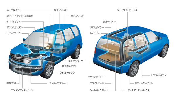 自動車部品の発泡ダクトは、製品の軽量化・断熱性向上により、CO2排出量の削減に貢献しています。