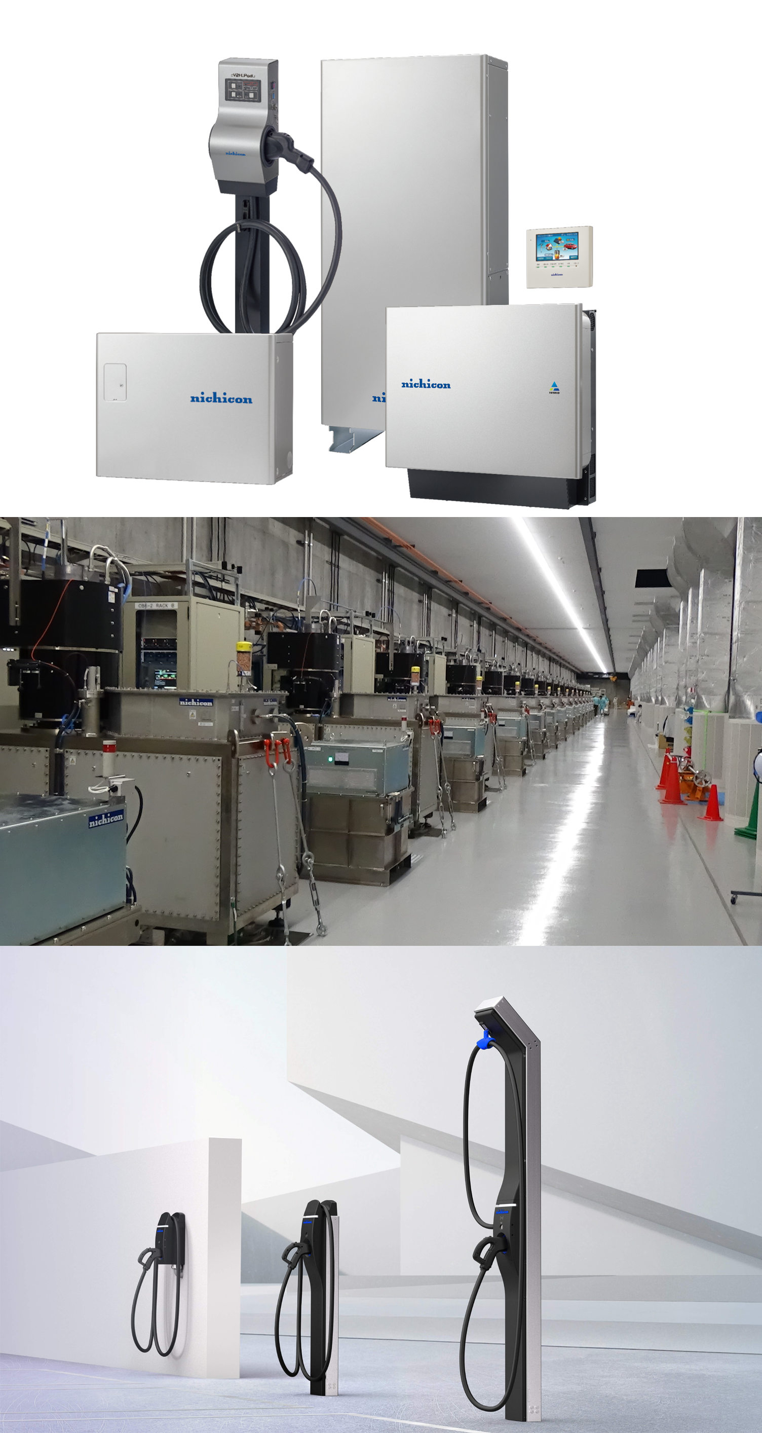 ▲(下)EV用急速充電器:商用EVに向けたサイクリックマルチ充電器。「2025年度グッドデザイン賞」受賞。