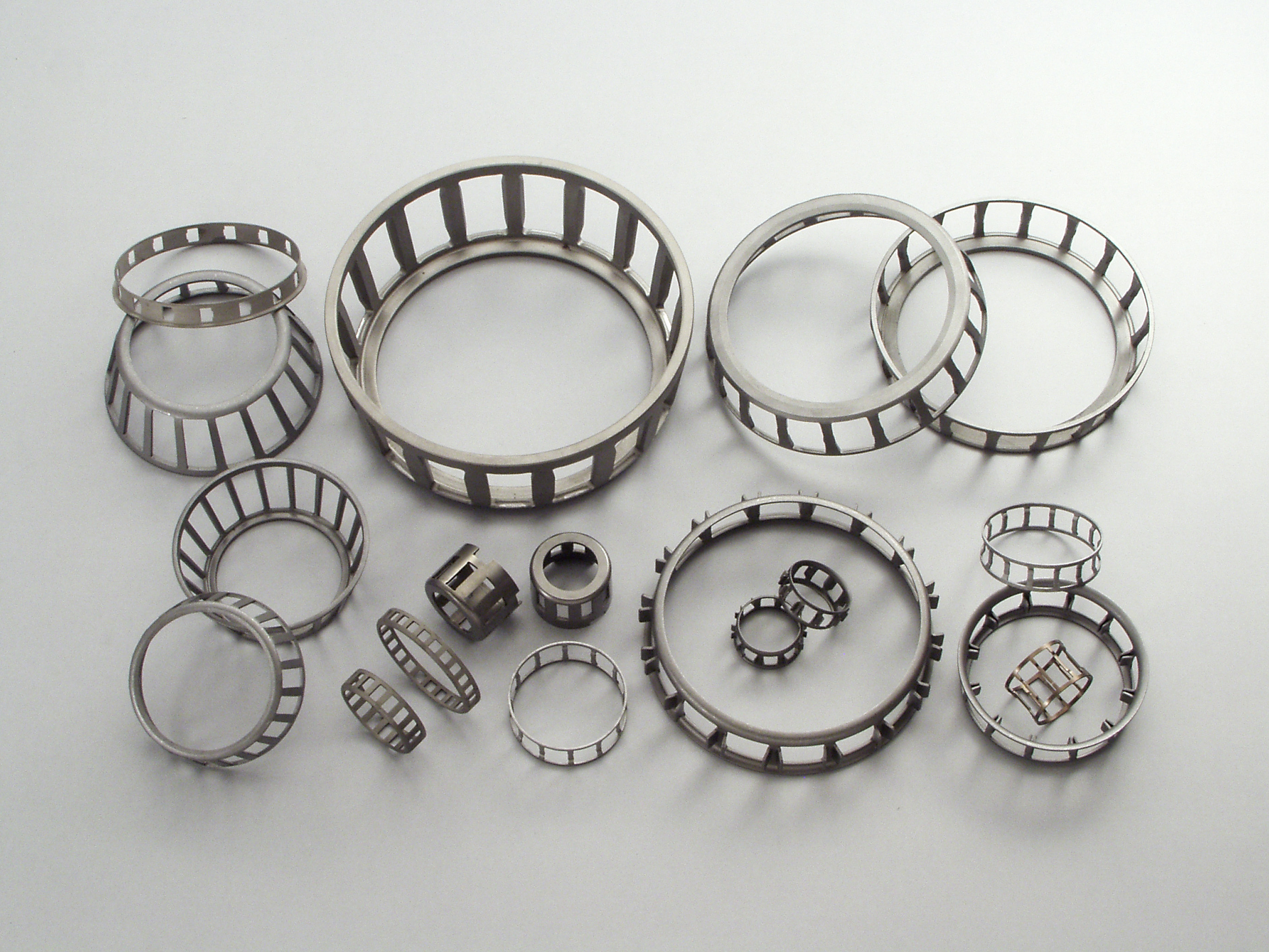 直径3ミリの極小タイプから3メートルにもおよぶ超大型まで数千種ものベアリング用リテーナーを生産し、鉄道車両や乗用車から、工作機械、OA機器、精密機器等、あらゆる産業界において、大切な役割を果たしている。