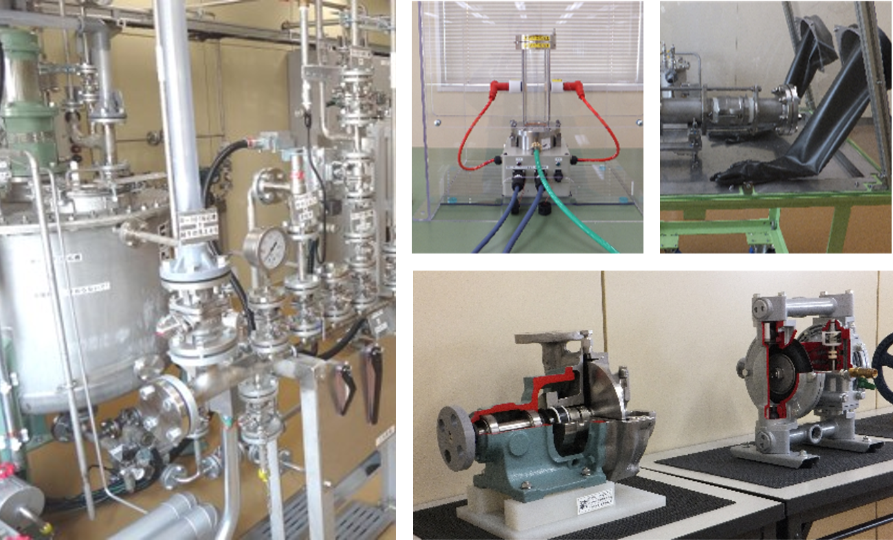 様々な体験装置を用いた安全学習やカットモデルでの機器構造学習、ミニチュアプラントでの運転・トラブル対応訓練など、「現場の安全」を実感を持って理解できる教育を整備しています。