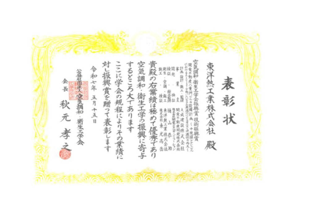 ▲振興賞 技術振興賞 賞状