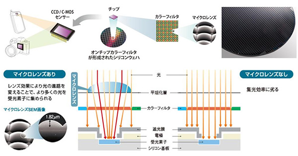 また、カラーフィルタ上にはイメージセンサの集光力をさらに高め、感度向上を実現するためのマイクロレンズを形成しています。