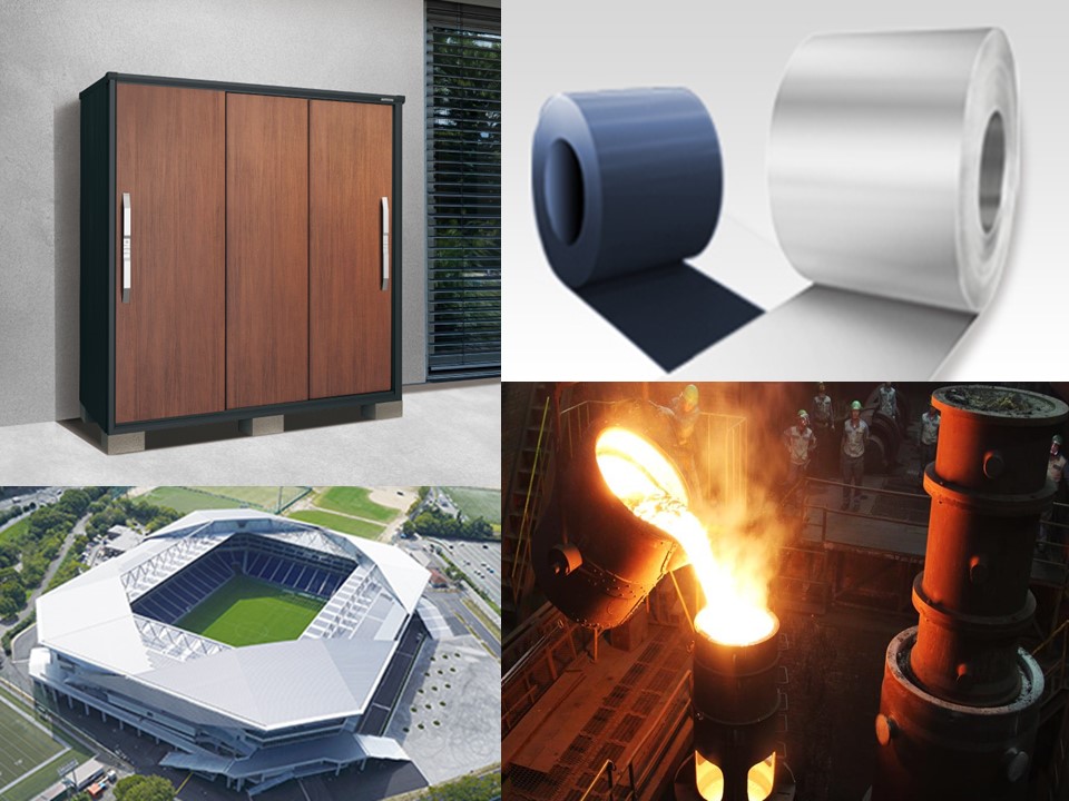 ヨド物置などのエクステリア商品、屋根‧壁材などの鋼板製建材商品では、機能性、耐久性‧デザイン性などを追及した付加価値の高い商品を開発し、鋼板の製造から成型‧施工までの一貫体制を整え、その品質と施工技術には、高い評価を得ています。主なエクステリア商品は、ヨド物置、ヨドガレージ、ヨドダストピット(ゴミ収集庫)で一般家庭や学校、公共施設などで様々な場所で用途に合わせて採用いただいています。また、建材商品は、耐火パネルや不燃パネルなどの鋼製壁、屋上緑化システムを含む鋼製屋根でサッカースタジアムや空港、ショッピングモールなど大規模建築物にも採用されています。